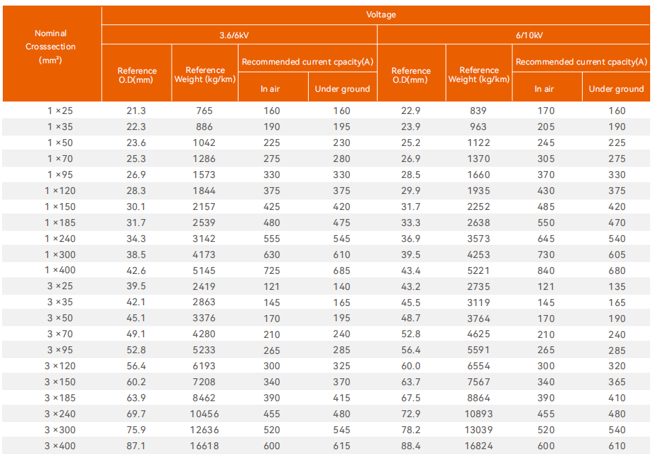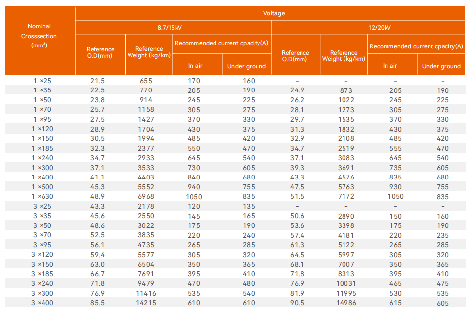 For conductor structure: Circular conductor is used for sizes below 16 mm²;Shaped conductor is used for sizes ≥ 35 mm²